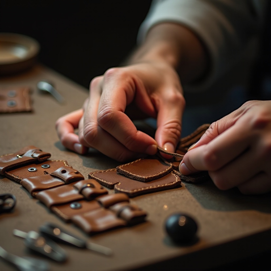 Techniken zur Sicherung: Nähen vs. Kleben: Entscheiden Sie sich für eine Methode, um die Lederenden zu sichern. Nähen Sie mit einer Ledernadel und gewachstem Faden oder kleben Sie sie mit Lederkleber, wobei Sie darauf achten, dass sich die Enden leicht überlappen, um Haltbarkeit zu gewährleisten.