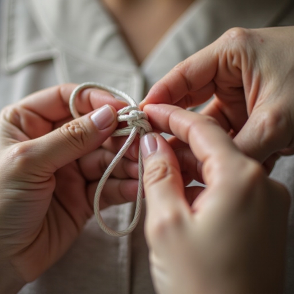 Pour assurer des nœuds coulissants sécurisés, enroulez plusieurs fois le cordon autour de la boucle et tirez fermement l’extrémité. Optionnellement, appliquez de la colle sur les nœuds pour plus de sécurité.