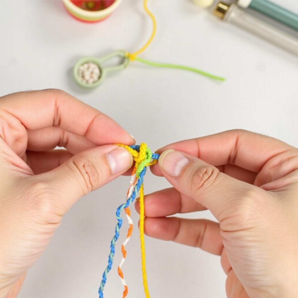 – Avant de nouer le deuxième nœud, faites glisser des perles ou des breloques sur la corde. Positionnez-les comme souhaité.