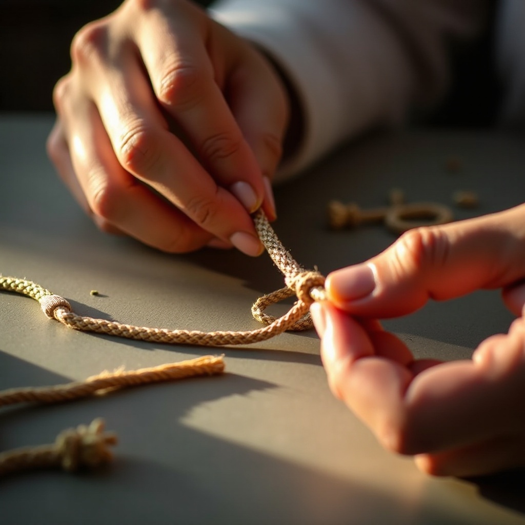 — Потяните сильно, чтобы закрепить узел. Повторите процесс с другим концом шнура, чтобы завершить механизм.