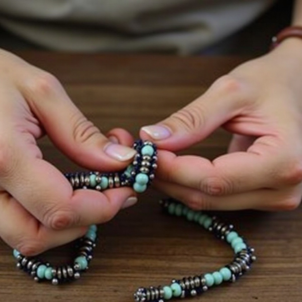 - Завязать прочные узлы на обоих концах шнура, чтобы удержать бусины на месте.