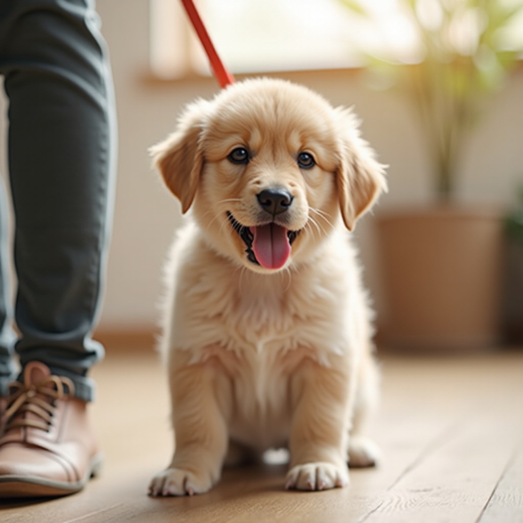 - Осторожно держите поводок, побуждая вашего щенка следовать за вами по дому.